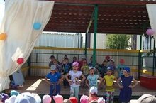 Сегодня в детском саду организовали летний концерт. Каждой группе было дано задание приготовить творческий номер. Все группы отнеслись очень ответственно. Первая младшая группа станцевали русский народный танец с деревянными ложками "Мы матрешки", вторая младшая группа - мальчики станцевали современный танец "Брек данс", дети средней группы пригласили выпускников и исполнили песню "Жил да был Бродобрей" с движениями. Старшая группа девочки - спели песню "Лето, лето, лето ты какого цвета?", а мальчики татарские частушки. Воспитатели в свою очередь тоже решили показать сюрприз и показали сказку "Пых" с игрушками Би-ба-бо. Дети с удовольствием танцевали, веселились и чувствовали себя настоящими артистами, так как беседка была оформлена в виде сцены. В конце прошла веселая дискотека.