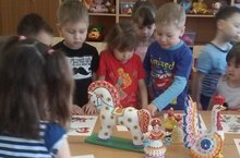 Воспитанники средней группы знакомятся с историей дымковской игрушки.
