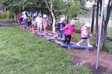 Воспитанники средней группы занимаются на спортплощадке.