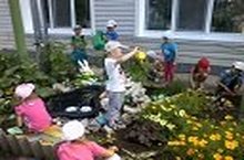 Девочки старшей группы украсили клумбу, за которой ухаживали, поливали, пололи целое лето.