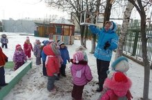 Сегодня на прогулке воспитатель и дети 1 младшей группы повесили кормушку. Гульнара Раульевна рассказала детям о том, как тяжело приходится птицам зимой. Прогулка была интересной, увлекательной. У детей появилось сочувствие к птицам и желание покормить их.