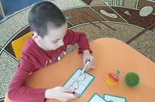 Для синхронизации обоих полушарий мозга и развития моторики рук, с ребенком коррекционной группы, учитель- логопед Гатауллина З.М., проводит нейропсихологические игры. Детям очень нравится обводить рисунки, хотя им пока сложно. Также такие занятия готовят руку детей к письму.