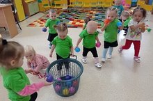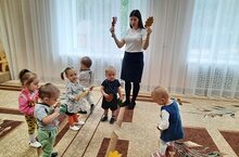 Дети группы раннего возраста на занятии по музыке побывали в гостях у Осени. Обратили внимание на осеннюю погоду. Поиграли в подвижную игру "Солнышко и дождик" и танцевали с осенними листочками.