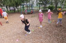 "Күңелле стартлар" - балаларны урамдагы хәрәкәт активлыгына җәлеп итүнең иң кызыклы варианты. Шул уңайдан, бакчабызда балалар өчен "Күңелле стартлар" спорт уены оештырылды. Командаларга йөгерү, сикерү, туплар белән эстафета, кыршау белән кызыклы конкурслар тәкъдим ителде. "Күңелле стартлар"ның барлык этаплары киеренке көрәштә узды. Җанатарлар үз командалары өчен борчылдылар. Барысы да финишка беренче булып килергә тырыштылар. Спорт бәйрәме балаларны берләштерде, беркемне дә битараф калдырмады. Ярыш нәтиҗәләре буенча дуслык җиңде.