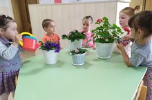Ребёнок проводит в детском саду большую часть дня. Создать живую, домашнюю атмосферу в помещении помогут комнатные цветы и растения. Они не только красиво выглядят, но и выполняют полезные функции – очищают воздух от токсинов и пыли. Дети любят ухаживать, поливать растения в группе, протирать крупные растения влажной тряпочкой.Такие элементарные трудовые поручения воспитывают интерес к комнатным растениям и желание ухаживать за ними.