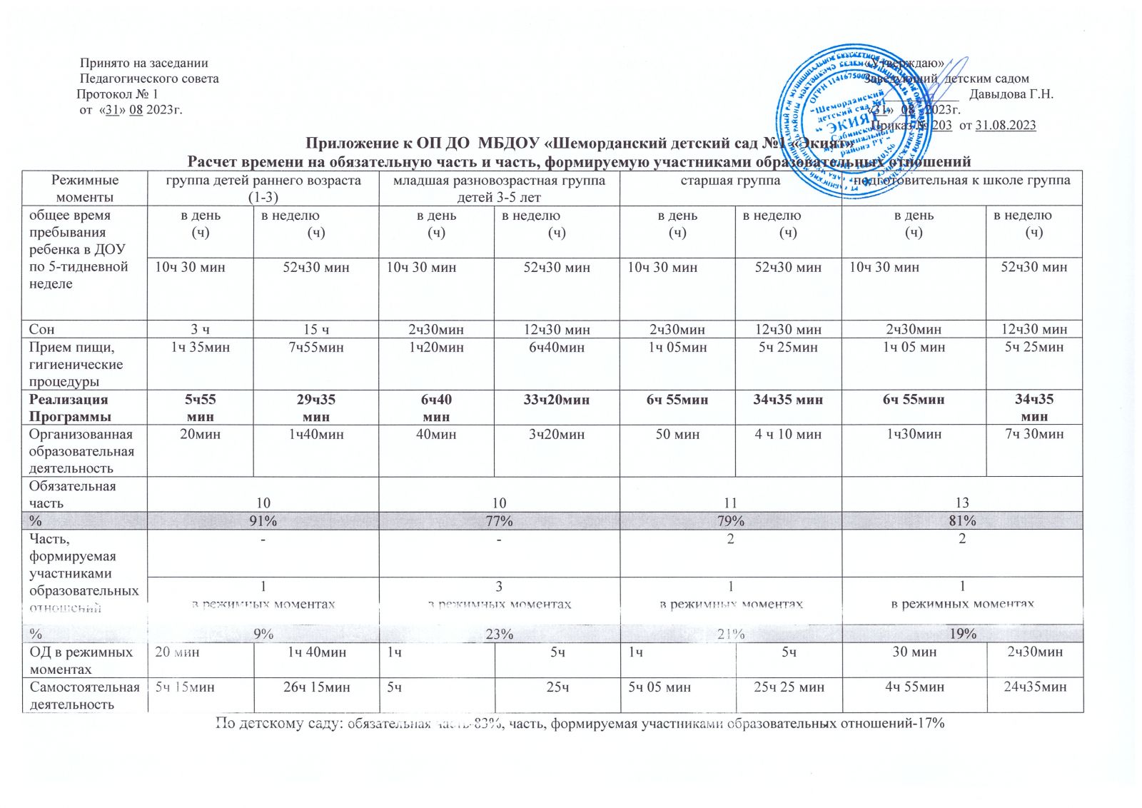Образовательная программа дошкольного образования Муниципального бюджетного дошкольного образовательного учреждения «Шеморданский детский сад №1 «Экият» Сабинского муниципального района Республики Татарстан» разработана в соответствии с федеральным государственным образовательным стандартом дошкольного образования (утвержден приказом Минобрнауки России от 17 октября 2013 г. № 1155, зарегистрировано в Минюсте России 14 ноября 2013 г., регистрационный № 30384; в редакции приказа Минпросвещения России от 8 ноября 2022 г. № 955, зарегистрировано в Минюсте России 6 февраля 2023 г., регистрационный № 72264) (далее – ФГОС ДО) и федеральной образовательной программой дошкольного образования (утверждена приказом Минпросвещения России от 25 ноября 2022 г. № 1028, зарегистрировано в Минюсте России 28 декабря 2022 г., регистрационный № 71847) (далее – ФОП ДО).