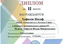 С целью поддержки и развития детского и юношеского научно-технического творчества с 15 октября по 30 ноября 2021 года прошел республиканский конкурс научно-технического творчества и современных технологий "ТехноФест-2021". В номинации "Робототехника" Хафизов Инсаф, учащийся Сабинской гимназии под руководством Хафизова Ф.М. в своей возрастной категории занял...