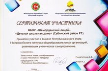 1 февраля на базе Центра «Сэлэт” г. Казань состоялся финал республиканского этапа I Всероссийского конкурса общеобразовательных организаций, развивающих ученическое самоуправление, где успешно выступила команда «Детская Школьная Дума» Шеморданского лицея.