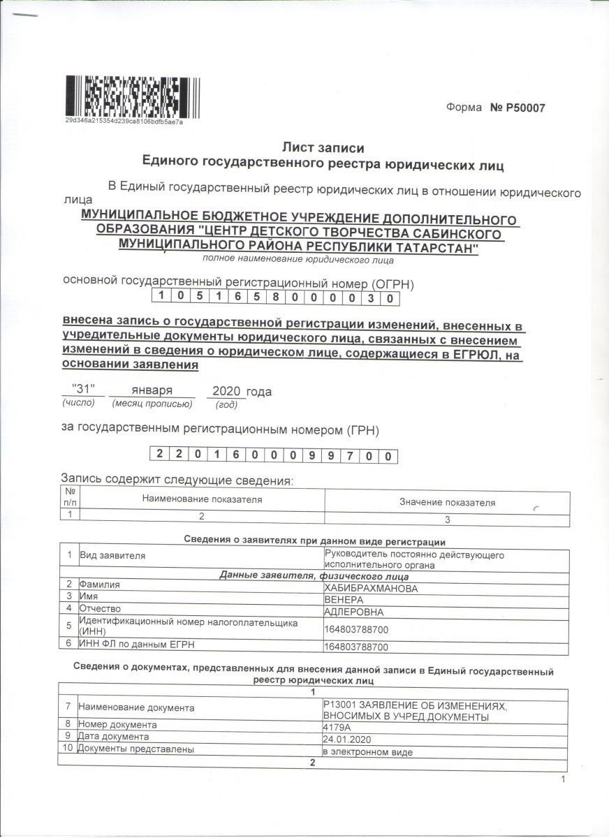 Муниципальное бюджетное учреждение дополнительного образования «Центр детского творчества Сабинского муниципального района Республики Татарстан»