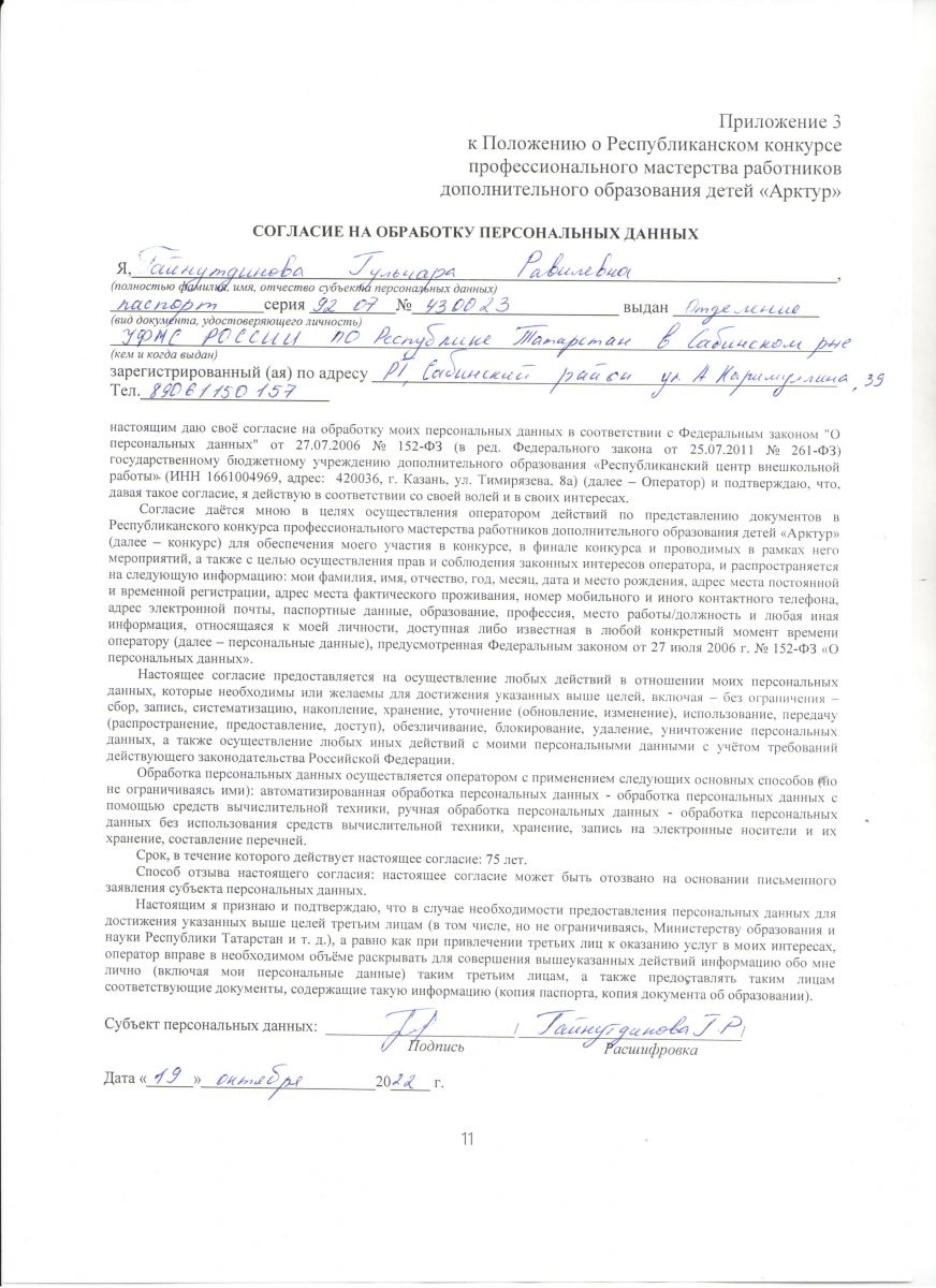 Согласие на обработку персональных данных Гайнутдиновой Г.Р.