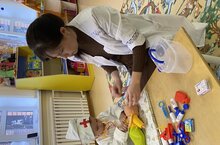 Бүген сөйләм үстерү эшчәнлегендә икенче кече яшьтәгеләр төркемендә З.Туфайлованың "Ул зур үскән" шигыре белән таныштылар. Шигырьне тәрбияче артыннан кабатладылар. Шул ук вакытта бүлмә гөлләрен күзәттеләр, аларга су сиптеләр, яфракларның тузаннарын сөрттеләр