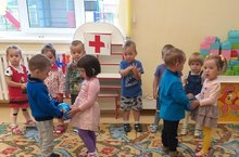 Первая младшая группа начала эту неделю с утренней гимнастики и со спортивных игр. Целью игр является воспитание у детей любви к спорту. Дети играли игры с мячиком, с кеглями.