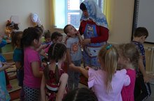 Бүген бакчабызның нәниләр төркемендә "Гайлә бәйрәме" булып үтте. Бәйрәм бик кызыклы бию белән башланып китте. Нәниләребез "Кулъяулык" биюе биеделәр. Аннан гайләләр ике командага бүленеп төрле ярышларда катнаштылар. Әтиләребез бәби төрсәләр, әниләребез бишек җыры җырладылар. Бәйрәм ахырында малайлар-әниләре, ә кызлар- әтиләре белән биеделәр һәм үзләренең кул эшләре- рамкалар тапшырдылар. Бәйрәм бик күңелле булды.