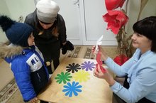 Сегодня родители и дети, приходя в детский сад, сразу же ощутились на цветочной поляне. Цветы были не простые, а из волшебной сказки. Дети брали лепесток и давали волю своим фантазиям. Например, таким же синим как цветок, что еще может быть? И слышали мы самые невероятные, удивительные ответы от наших воспитанников. Они могли быть и пуговицами, и бантиками, и курткой, и машиной, и ногтями как у мамы. Вот такие они наши дети!