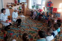 Бүген икенче кечкенәләр төркемендә “Сәламәт тәндә –сәламәт рух!” дигән эшчәнлек алып барылды.Эшчәнлеккә шәфкать туташы Энҗе Әминовна чакырылды. Ул балаларга сәламәт булуның бөтен серләрен чишәргә ярдәм итте, витамин белән сыйлады.