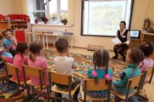 В детском саду "Шоколад" занятия по английскому языку проходят очень увлекательно и интересно.Воспитательница,Загидуллина Лейля Мухаррямовна, в своей работе использует информационно-коммуникационных технологий. Использование мультимедийных презентации в работе с дошкольниками позволяет образовательный процесс сделать более ярким, эмоциональным с привлечением большого иллюстративного материала,с использованием звуковых эффектов и видеозаписей.