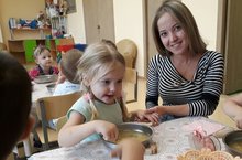С 7 часов утра детский сад гостеприимно открыл свои двери для наших дорогих родителей. Так как у нас каждую среду проходит день русского языка, гостей у дверей встречала героиня из сказки - сестрица Алёнущка. Она всех встречала с интересными загадками, песнями и играми. Взрослым выпала возможность вместе со своими детьми прожить ещё один день в детском саду. Родителям было предложена программа «С раннего утра» в ходе, которой можно было наблюдать за отлаженной, чётко спланированной деятельностью всего коллектива ДОУ.