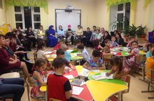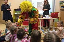 Во второй младшей группе прошло родительское собрание на тему «Очень многое мы можем, очень многое умеем». Родителям было показано открытое занятие по аппликации. В гости пришел клоун и показывал фокусы и рассказывал смешные стишки. Детям клоун очень понравился, они даже станцевали веселый танец с клоуном, после чего клоун попрощался с детьми и ушел. А дети решили сделать портрет клоуна из цветной бумаги и картона, чтобы никогда его не забывать, родители тоже не остались в стороне и помогли детям.
