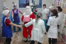Сегодня Дедушка Мороз со Снегурочкой поздравляли коллектив. Все танцевали, стижки рассказывали, устраивали хоровод возле елки, пели песни. А за это Дедушка Мороз раздавал всем конфеты, сладости. Поздравлял коллектив с новым 2017 годом - годом Петуха.