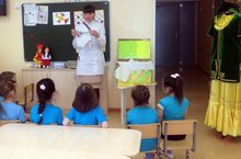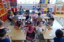 Сегодня дети старшей группы вместе с воспитателем по обучению русскому языку с целью сплочения детского коллектива, формирования чувств товарищества и закрепления умений понимать, употреблять в речи формы родительного падежа личных местоимений и имен существительных с предлогом у (у меня, у тебя), обогащения словарного запаса существительными, обозначающими посуду и продукты питания, глаголами изъявительного, повелительного наклонения, прилагательными, обозначающими цвет, форму, величину, вкус побывали в гостях у бабушки Серафимы. В ходе занятия также обратили внимание на культуру общения, культуру поведения за столом. Чаепитие у бабушки всем понравилось, дети остались довольными и радостными вернулись в группу.