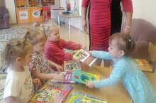 Икенче кече яшьтәгеләр төркемендә сөйләм үстерү эшчәнлеге узды. Балалар белән китапханә турында әңгәмә алып бардылар һәм Зәкия Туфайлованың "Безнең китапханәдә" шигыре белән таныштылар. "Китапханәдә" дигән сюжетлы-рольле уен уйнадылар.