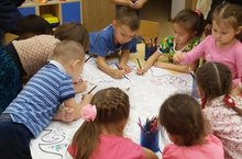 Зурлар төркеме балалары тәрбияче апалары белән берлектә төрледән -төрле кызыклы шөгыльләр уйлап табалар. Балалар өчен иң кызыклы, мавыктыргычы мөгаен, зур чыршы рәсемен буяу булгандыр. Күмәк эш балаларны тагын да берләштерә, дуслаштыра, әлеге чарада әти-әниләр, әби- бабайлар да теләп катнаштылар.