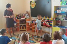 Итоговым мероприятием воспитателями 2 младшей группы Галиевой Р.А., Гафиятуллиной Ф.Р., было проведено по теме: “Дары осени”. Дети закрепили знания о явлениях живой и неживой природы осеннего времени года. Формировался навык коллективного общения и активности всех групп во время игр, разгадывания загадок, пословиц, пальчиковых игр, песен.
