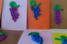Пластилинография - пластилин белән эшләүнең традицион булмаган алымы. Элеге алым ярдәмендә төрледән - төрле рәсемнәр иҗат итәргә була. Кәгазьгә пластилин ярдәмендә ябыштырып эшләү балаларга да бик ошый. Бу төр белән зурлар төркеме балалары алдагы елларда таныштылар инде. Алдагы елдан аермалы буларак, алар кәгазьгә пластилинны сылап бетереп түгел, ә кабарып тора торган техника белән эшләделәр.Шулай ук 5-6 яшьлек балалар хәзер төсләрне дөрес итеп сайлый беләләр, әвәләү төрләрен дә аңлап, дөрес итеп эшли башкаралар. Буген тәрбияче Нигъматзянова Г.Р. белән балалар виноград чемен ясадылар. Алар бөтенесе дә үзләрененң эшләреннән канәгать калдылар.