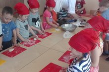 Уртанчылар төркеменә йөрүче балалар традицион булмаган алым , камыр ярдәмендә, тургай әвәләргә өйрәнделәр. Балалар кулларын юып, һәрберсе өстәл тирәли урнаштылар. Тәрбияче каршыларына он сибелгән такта куеп чыкты һәм камырдан кош ясау алымын күрсәтте. Балалар кызыксынып әлеге эшкә тотындылар. Йөзем белән кошның күзләрен дә ясадылар. Соңыннан әзер "кошлар"ны духовкага куеп, пешереп тэ алдылар.