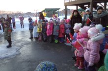 Праздник 23 февраля - день величия России, день её доблестных защитников. Мы сделали этот праздник незабываемым, радостным событием в жизни детей, в жизни всего детского сада. Сотрудники, дети и родители приняли активное участие в его подготовке. Мероприятие провели на улице, начали с торжественного построения и исполнения военных песен. С гордостью командиры детских отрядов «сдали рапорт» гостям о начале «Боевых учений». Получив маршрутные листы, ребята вместе с папами отправились на выполнение заданий. С огромным волнением и энтузиазмом взялись за дело - каждому хотелось победить! А ведь задача стояла непростая: нужно было преодолеть этапы соревнования: «Огневой рубеж», «Болото», «Минное поле», «Перевези друга», «Проползи, перешагни, не задень», «Медицинская часть», «Поиск флага», «Секретное донесение». Дошколята справились с заданиями на отлично! Наградой за смелость, ловкость и выносливость стали сладкие призы и грамоты. А завершился праздник выступлением заведующей Г.Ш.Садриевой. После награждения все были приглашены на «Полевую кухню».