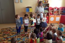 Иң кечкенәләр төркемендә кунакка куян килде. Балалар куян алып килгән күчтәнәчләр белән таныштылар. Тәрбияче апалары Низамиева Ф.С. сөйләгән һәр сүзне игътибар белән тыңладылар, сорауларга җавап бирергә тырыштылар. Балалар үзләре дә куян булып, биеп алдылар. Тәрбияче күрсәткән предметларның исемнәрен кабатладылар, төсләр әйтергә өйрәнделәр.