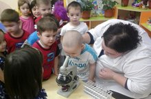 22 нче январь көнне Гарипова Ләйсән , Мухаметзянова Лилия (лаборант-паразитолог) икенче кечкенәләр төркемендә балаларга микроблар турында сөйләделәр. Балалар кызыксынып уз кузләре белән микроскоп аша микробларны , аларнын ничек хәрәкәтләнгәннәрен кузәттеләр.Балаларга чисталык, гигиена кагыйдәләре аңлатылды.