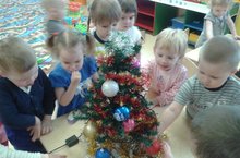 Новый год - cамый волшебный из всех праздников! И, независимо от возраста, в преддверии Нового года, мы начинаем верить в сказки и ждать чудес. Совместная деятельность воспитателя с детьми первой младшей группы стала «Украшение новогодней ёлочки». Дети с интересом рассматривали новогодние украшения, помогали развешивать их.
