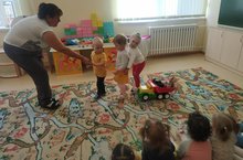 Икенче кече яшьтәгеләр төркемендә сөйләм үстерү шөгыле узды. Кунакка килгән малай һәм кыз белән "Үчтеки, үчтеки" такмагын өйрәнделәр. Малай белән кызны машинага утыртып йөртеләр. Йөргәндә би биип дип машина сигналы тавышын чыгардылар