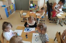 Икенче кече яшьтәгеләр төркемендә рәсем шөгылендә балалар пумала белән рәсем ясау күнекмәләрен өйрәнделәр. Альбом битенә куян эзләрен төшерделәр