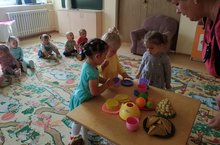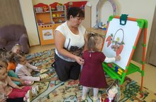 Икенче кече яшьтәгеләр төркемендә сөйләм үстерү эшчәнлеге узды. Балалар белән бергәләп, курчак Мәдинәнең туган көненә өстәл әзерләдек. Савыт-сабаларны танып, аларның исемнәрен әйтергә өйрәндек. "Ак калач " җырын җырлап, курчак Мәдинәне туган көне белән котладык.