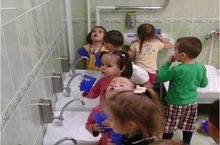 Очень эффективным средством местной закалки и профилактики гриппа, особенно во время эпидемии, является полоскание горла. Каждый день дети второй младшей группы после обеда перед сном полоскают горло соленой водой.
