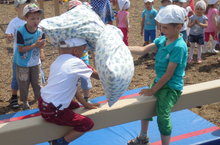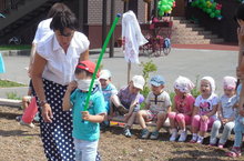 Бүген безнең бакчада беренче мәртәбә халкыбызның милли бәйрәме сабантуй булып узды.Бәйрәмнең беренче өлешен тәрбияче Нигъматҗанова Г.Р; уртанчы төркем балалары белән җырлы-биюле күңелле бирнә җыю куренешен күрсәттеләр.Балалар сәнгатьле итеп, шигырьләр сөйләделәр, тәрбияче барлык балаларны сабантуй бәйрәменең килеп чыгышы һәм уеннары белән таныштырды.Балалар кызыксынып тыңлап утырдылар һәм сорауларга дөрес җавап бирделәр.Бәйрәмнен икенче өлеше, спорт мәйданчыгында физкультура җитәкчесе Абдуллина Г.М белән берлектә дәвам итте.Бәйрәм барышында уеннарның төрлесе уйнатылды:кашык белән су ташу, капчык сугышы, кеглилар атып уйнау,аркан тартыш,чүлмәк вату һ.б. Ә инде сабантуйны милли көрәшебездән башка күз алдына китереп буламыни?Барлык төркем малайлары, рәхәтләнеп мәйдан уртасында көрәштеләр.Иң ахырдан балаларга истәлекле бүләкләр тапшырылды.Бәйрәм ахырында балалар,тәрбиячеләр,килгән әниләр белән берлектә күмәкләшеп татар биюен биеделәр.Балалар мәйданчыгы шат авазлар белән гөрләп торды.Бакчабызның мөдире Садриева.Г.Ш сабантуй бәйрәмен күңелле итеп үткәрүдә катнашкан барлык балаларга, килгән кунакларга, бәйрәмне оештыручыларга үзенең рәхмәтен җиткерде.