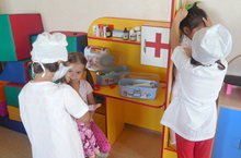 В честь дня медицинского работника во всех группах провели беседы на тему: «Если что у вас болит, вам поможет Айболит», «Вредная еда», «Витамины».В режимных моментах дети рассматривали иллюстрации: «Профессия врач», играли в сюжетно-ролевую игру «Больница» а после дневного сна, все воспитанники смотрели мультфильм «Айболит».