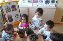 Сегодня ребята первой младшей группы помогали взрослым пересаживать комнатные цветы-фиалки. И очень много интересного узнали о них. Фиалки живут долго. Для более обильного цветения их лучше пересаживать через пару лет.Они не любят прямые солнечные лучи.Поливают растения около 2 раз в неделю .Хотя фиалки любят влажный воздух, опрыскивать их нельзя.Отцветшие цветки, поврежденные или сломанные листья необходимо сразу удалять.