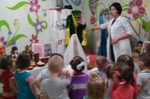 Сегодня в старшей группе под руководством воспитателя Миннехановой Д.А. дети разыгрывали с героями различные эпизоды из сказок. Они развивали интерес и симпатию героям сказок. Воспитатель продолжала учить детей внимательно слушать сказку, следить за ходом развертывающихся событий. Дети были довольны от вместе проведенного времени.