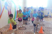 Сегодня в средней группе прошла спортивная эстафета «МЫ СИЛЬНЫЕ, СМЕЛЫЕ, ЛОВКИЕ». Эстафеты были подобраны с учетом возрастных особенностей детей: «Перебежка с мячом змейкой», «Бег в обруче», интеллектуальная викторина «Виды спорта», «Метание в цель», «Поменяй предмет».