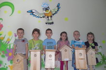 Детишки старших групп совместно с родителями подготовили подарок для скворцов.
