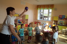 Тәрбияче Гөлия Рафаиловна Нигъматуллина икенче кечкенәләр төркем балалары белән ак кәгазь битенә үзләренең фантазияләрен күчерделәр.
