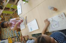 Мәктәпкә әзерлек төркемендә рәсем шөгыле "Кошлар өчен ашханә" темасы астында узды. Балалар кыш көне кошларның кешеләр ярдәменә мохтаҗ икәнлекләрен беләләр. Алар кошлар өчен җимлекләргә ашарга салалар. Бүген исә алар кошларның җимлекләрен рәсемгә төшерделәр