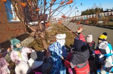 Ребята второй младшей группы сегодня во время прогулки наблюдали за рябиной.Рассмотрели ее стволы,ветви,ягоды.По народным приметам, если рябины уродилось много, то зима будет морозная.