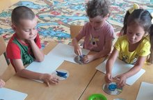 Бүген бакчабызда дельфиннар һәм китлар көне. Шул уңайдан балалар китларның дөньяда иң зур балык икәнелеген, аркасыннан фонтан чыгуын өйрәнделәр. Үзләренә истәлек итеп пластилиннан әвәләп куйдылар.