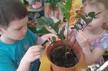 Сегодня воспитанники средней группы рассматривали комнатные растения через лупу. Повторяли названия комнатных растений, увидели строение (стебель, лист, цветок), уточняли какие растения влаголюбивые, а какие любят умеренный полив, какие светолюбивые, а какие предпочитают тень.