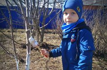 Фазлияхметов Аскар помогает родителям ухаживать за деревьями.
