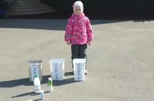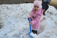 Ганиева Камила из первой группы раннего возраста помогает родителям убирать придомовую территорию.